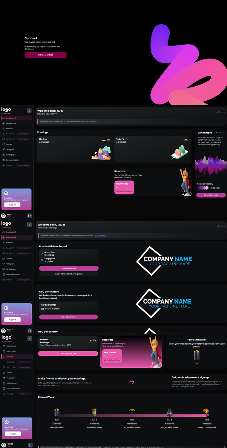 Reactjs, Chakra UI, Crypto data API, web3jsEPOCH-based dividends